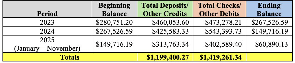 According to the audit, Gesell “apparently authorized annual increases to her salary without approval from the Board.” Auditors estimate she received almost $35,000 in what they describe as “apparently unauthorized excess pay” between Jan. 1, 2023, and Nov. 30, 2025. The report also states she appeared to issue herself an extra paycheck in 2025.