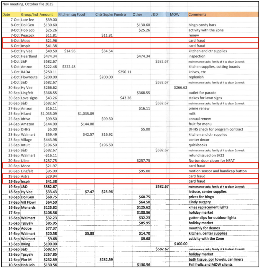 Of those, 13 purchases totaling $913.09 appeared to be personal, including spa services and online retail orders. In one example involving jewelry purchases, auditors found the items were shipped to Gesell’s apartment rather than the senior center. The report states, “We concur that such transaction was fraudulent, albeit not in the manner she had asserted.”